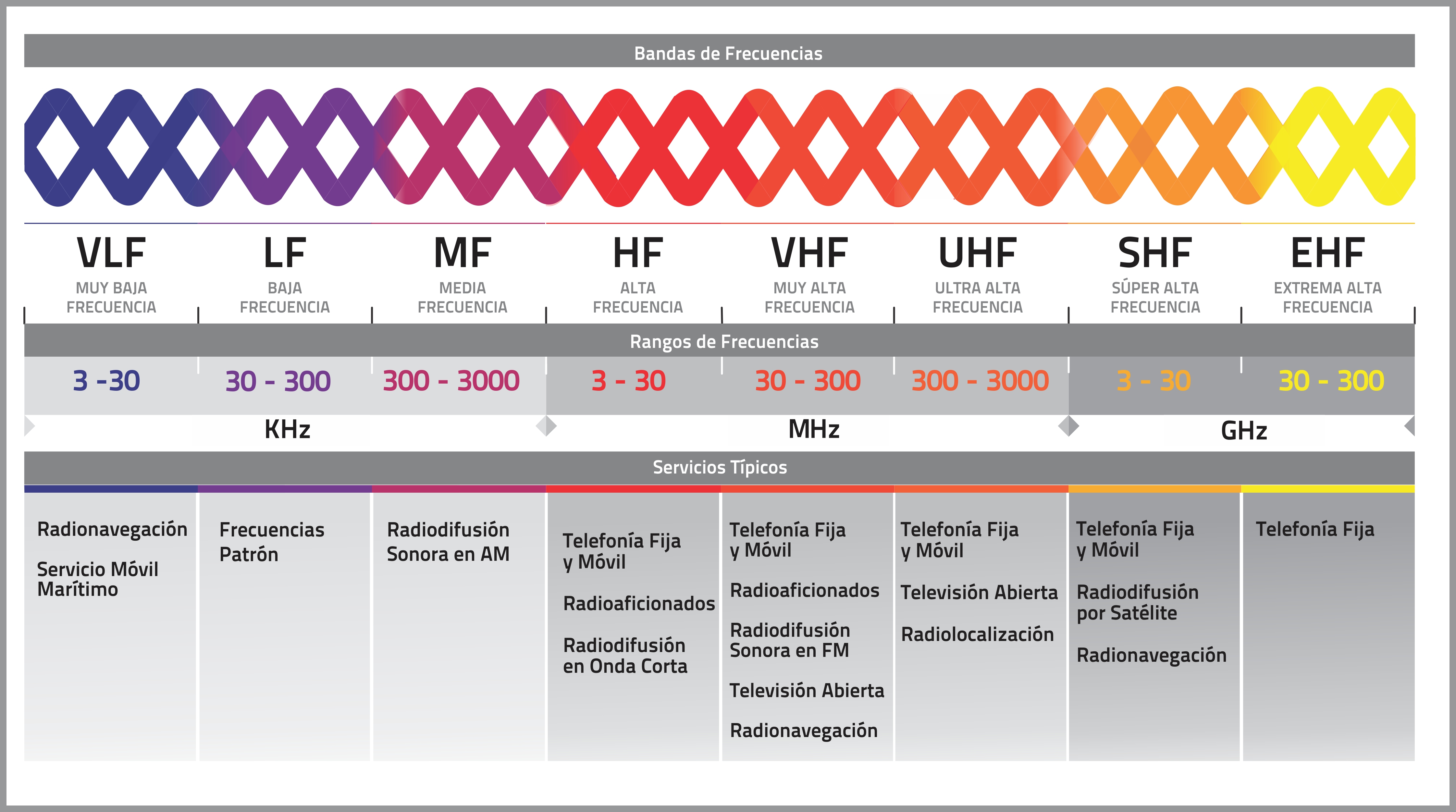 Rango de bandas para la transmisión de radio AM, FM y TV abierta.